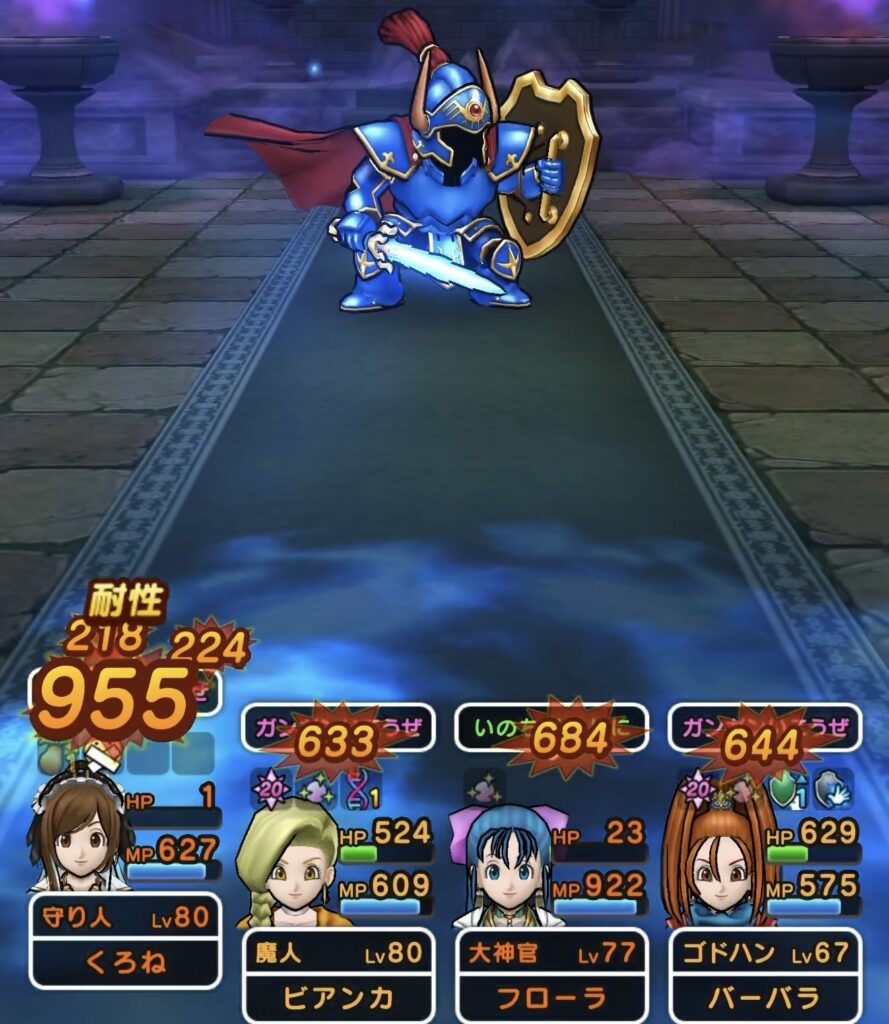 まだ、バフ→攻撃!のような素早さ調整して無いですが、ロトの竜剣とルビスの月斧の効果だけで倒しています。